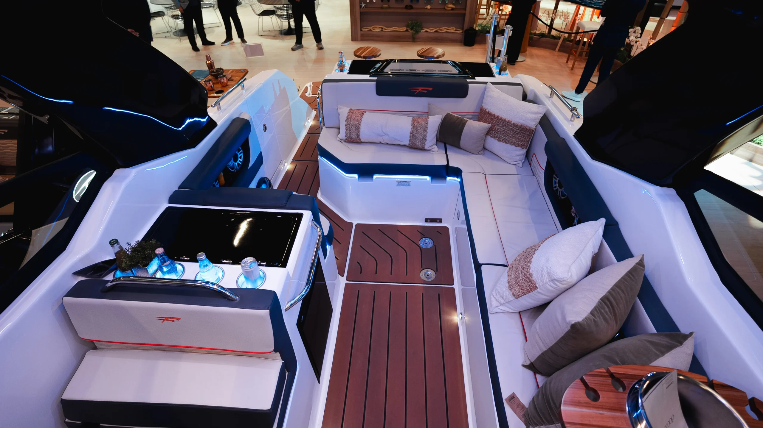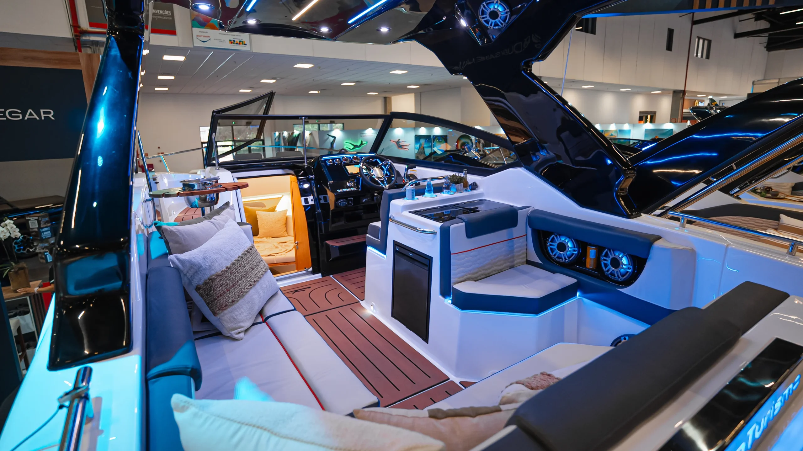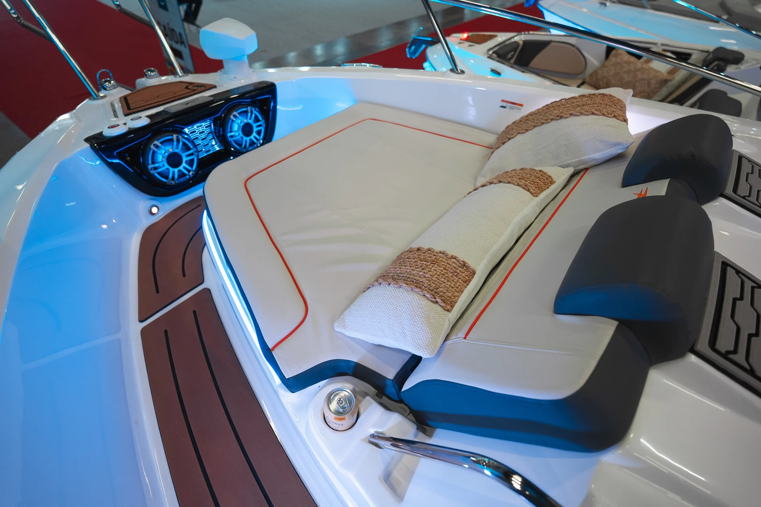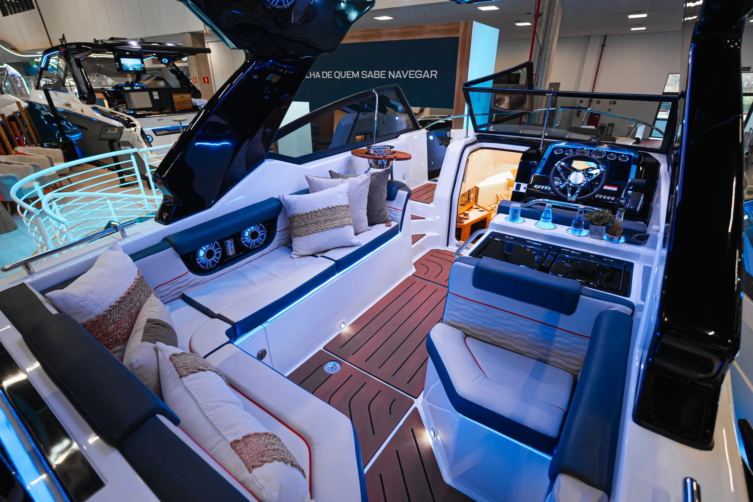 Com linhas fluidas e design diferenciado, este barco é ideal para quem busca navegar com estilo e elegância.