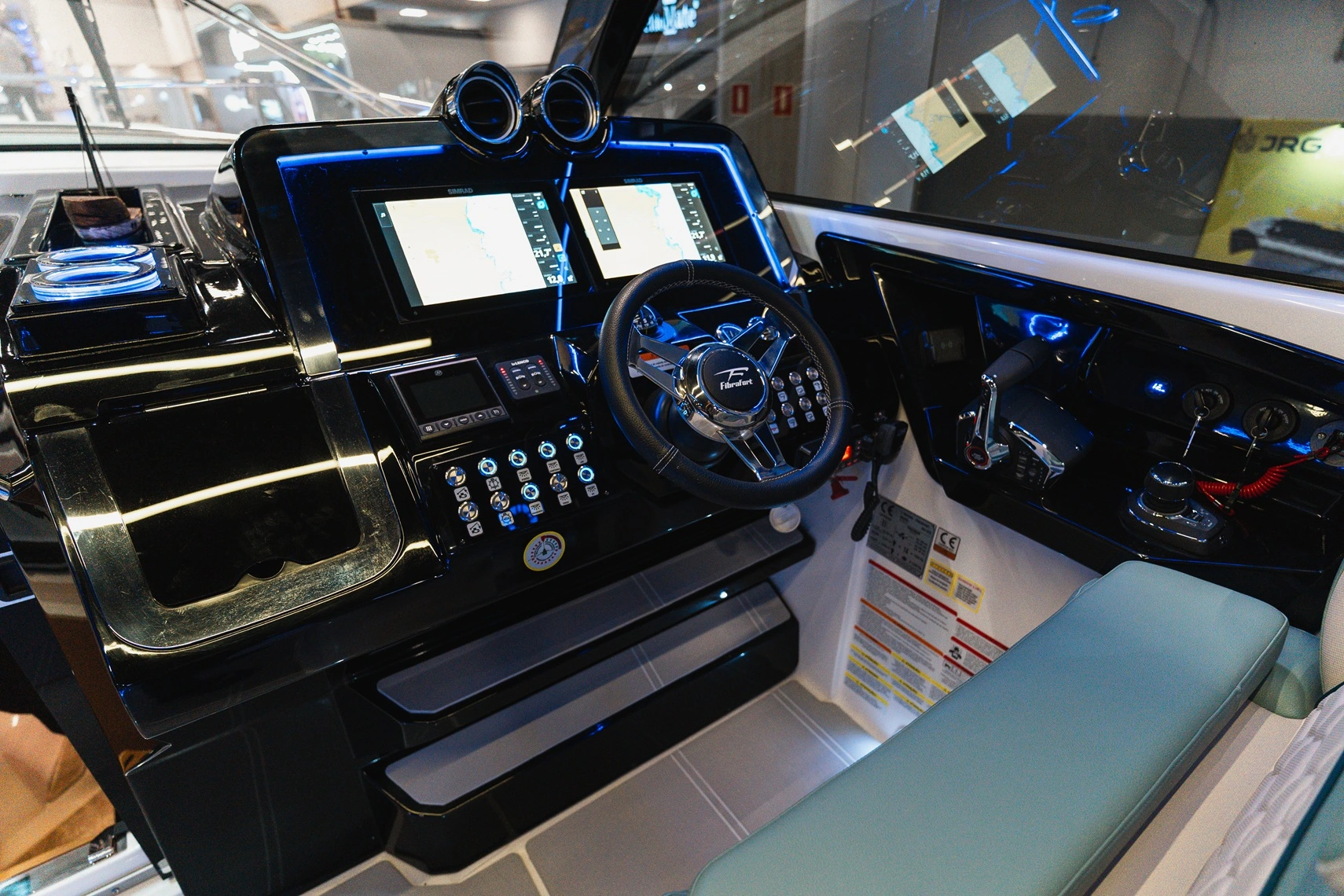 - Cabine espaçosa com 1,80m de pé direito, cama de proa e cama de meia nau, móvel de apoio como cozinha, barzinho acrílico iluminado