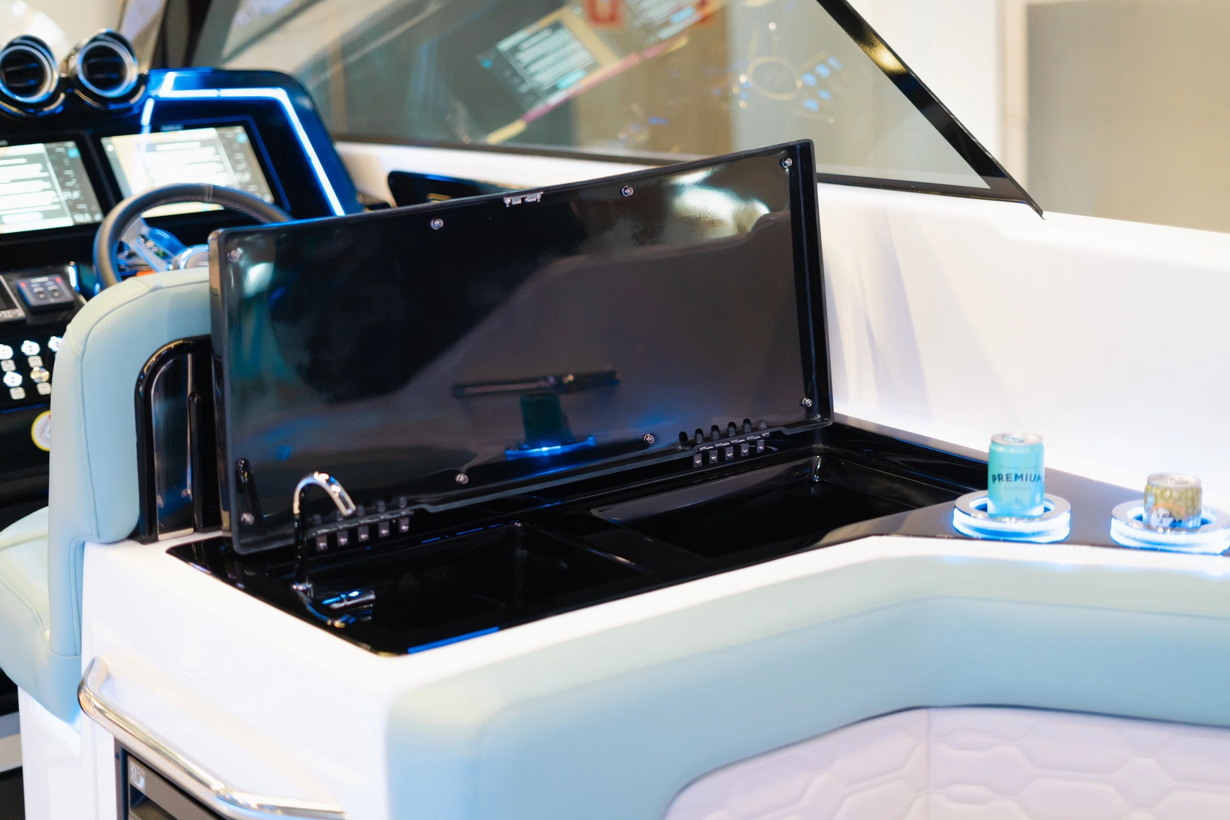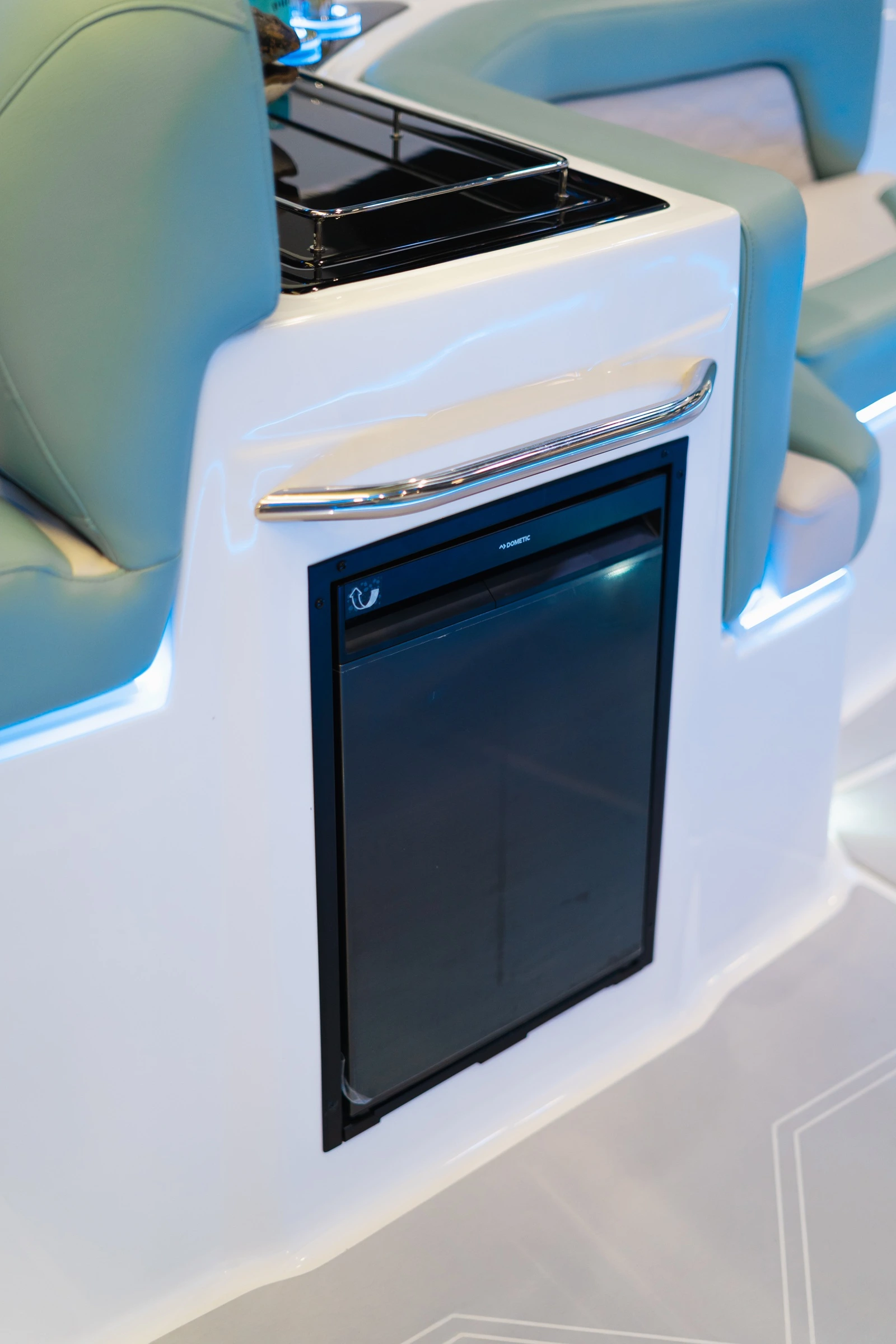 - Área de apoio no cockpit e pia com torneira e geleira