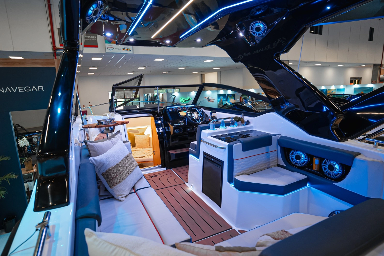 Sua primeira lancha com cabine, com esportividade e conforto na medida certa para a sua família.
